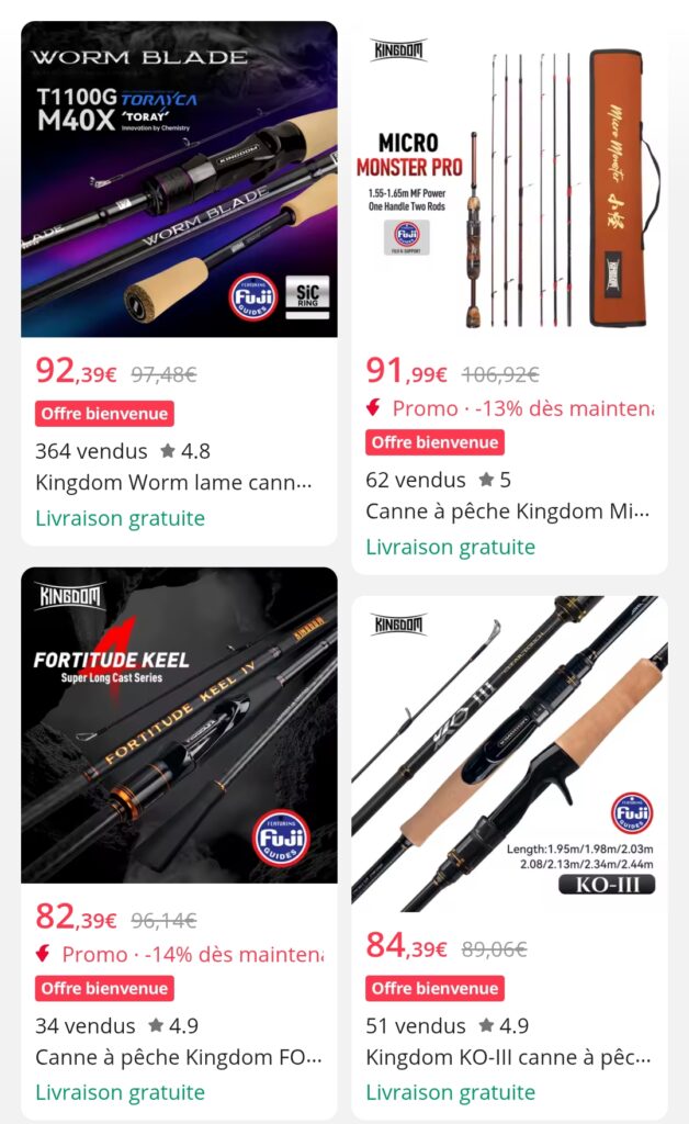 Oui, sur les grandes marques reconnues (Kuying, Tsurinoya, Purelure), il s’agit d’authentiques anneaux Fuji importés du Japon. Méfiez-vous cependant des marques inconnues à 15€ qui prétendent utiliser du Fuji.
